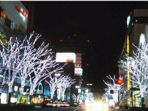 紅葉の美しい綾錦の絨毯に続き、夜空に硝子細工の雫のように煌めくツリーが街路樹を彩っております。