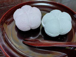 こちらは金沢ならでは紅白の鏡餅と並び、紅白で対を成すお正月のお菓子。童子の頬のようにぷっくりした梅の花を象った最中菓子で無病息災子孫繁栄の願いが込められて花開いたお菓子です。梅は藩主の家紋の剣鉢梅が由来。一方で福梅、福め、福女(愛)と呼ばれるめでたいお菓子です。